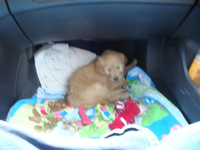 We dreaded going to bed last night because we were warned how much he would cry. Sure enough, as soon as we closed the door on his kennel, the tears started falling. We had to turn the TV up in our room to drown it out. Doug said that he pretty much cried all night long. I slept right through it...I am a horrible mommy! I could not sleep on Saturday night because I was so excited about getting the little guy. As soon as my head hit the pillow last night, I was out like a light. Here are a couple of pics, and a few videos of our favorite little guy...